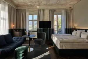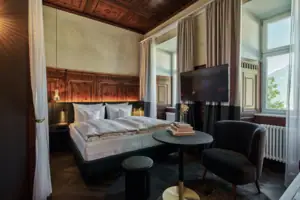 Every detail is a tribute to times gone by, while the view opens up to the valley and immediately makes you feel at home. A room where history meets horizon.