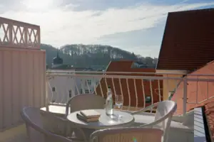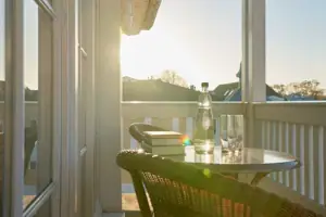 From the balcony you have a view of the vast Baltic Sea. Maritime coziness awaits you inside.