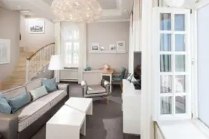 Subtle pastel colors and modern design with clear lines provide the Baltic Sea flair.