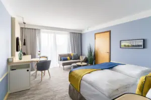 Maritime home away from home - in this stylish suite with a side sea view, families enjoy comfort, cosiness and special moments with Baltic Sea flair.